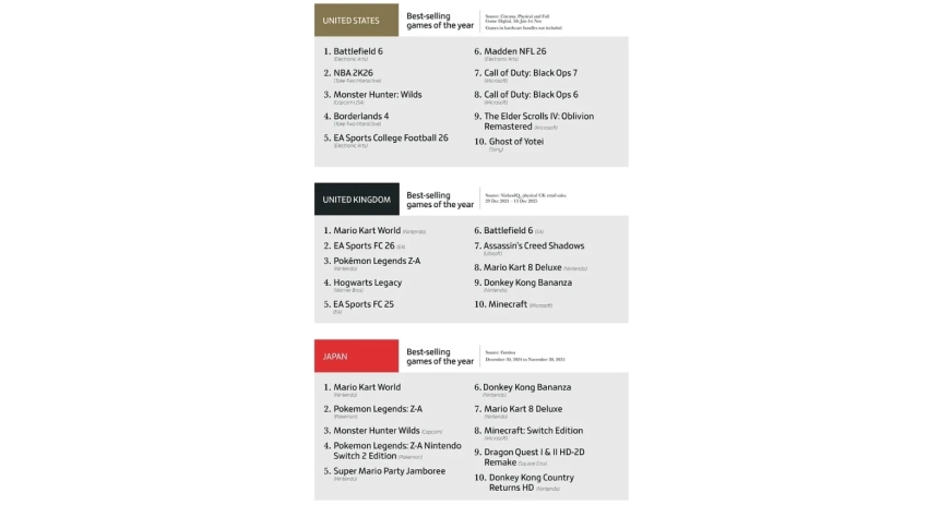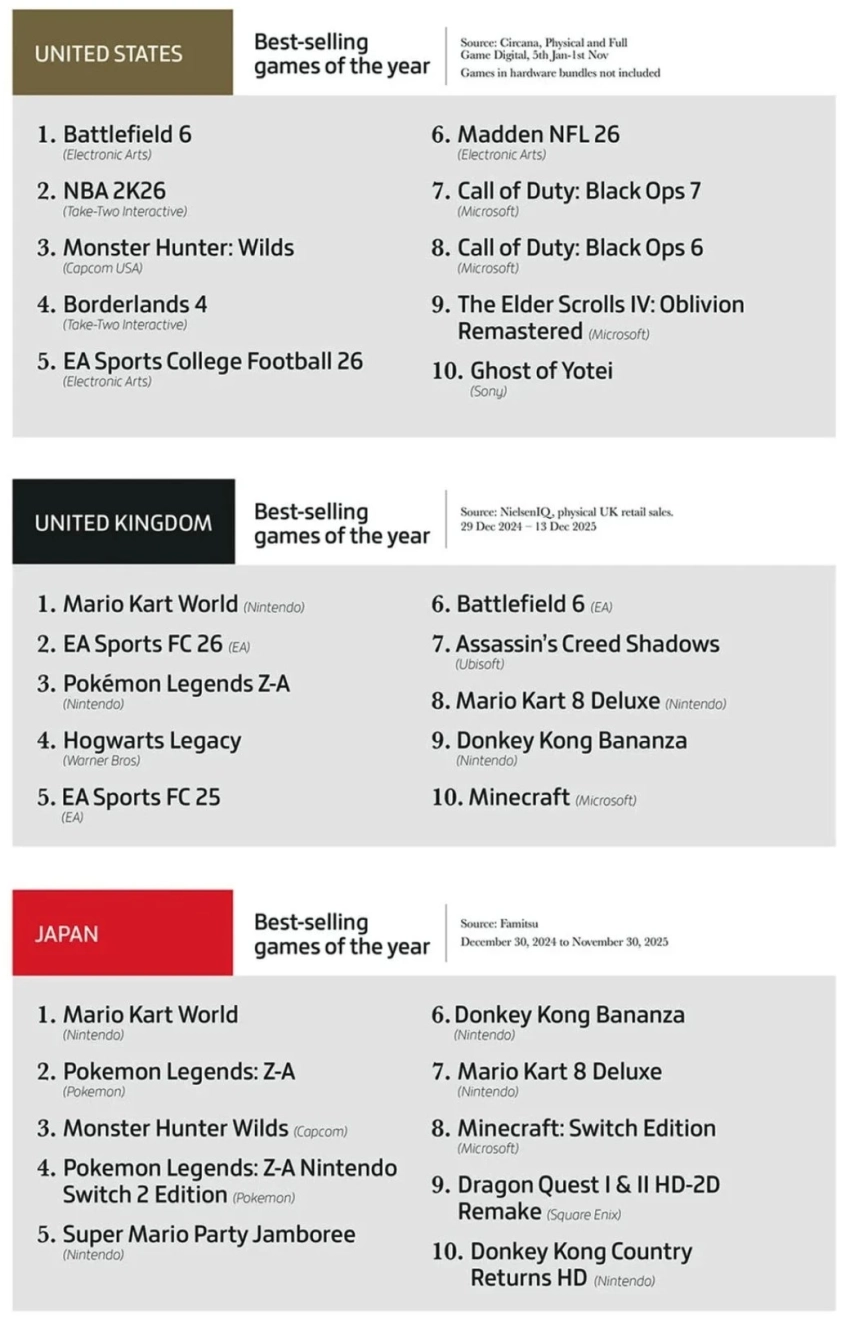 Главная » Статьи » Battlefield 6, GTA 6 и Mario Kart World на вершине — итоги 2025 от аналитиков
