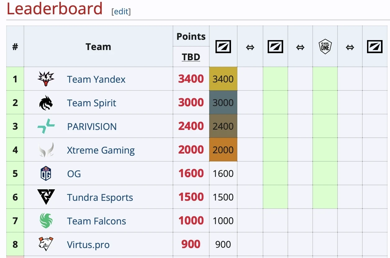 • 2-е место: Team Spirit. «Драконы» дышат лидерам в спину, имея в активе 3000 очков.